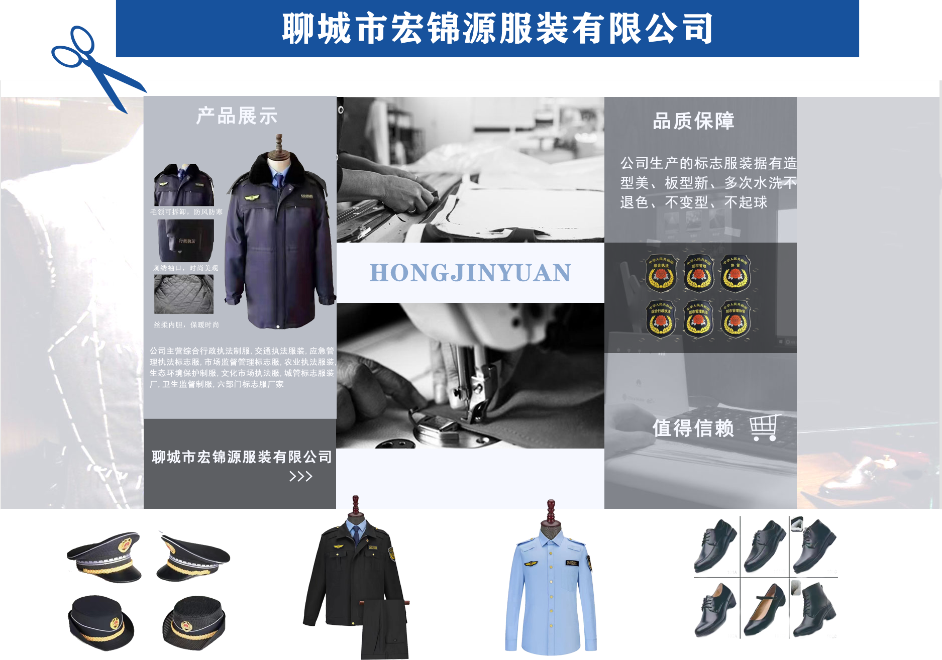 綜合行政執(zhí)法制服,交通執(zhí)法服裝,應(yīng)急管理執(zhí)法標(biāo)志服,市場監(jiān)督管理標(biāo)志服,農(nóng)業(yè)執(zhí)法服裝,生態(tài)環(huán)境保護(hù)制服,文化市場執(zhí)法服,城管標(biāo)志服裝廠,衛(wèi)生監(jiān)督制服,六部門標(biāo)志服廠家-聊城市宏錦源服裝有限公司 公司簡介/ ABOUT